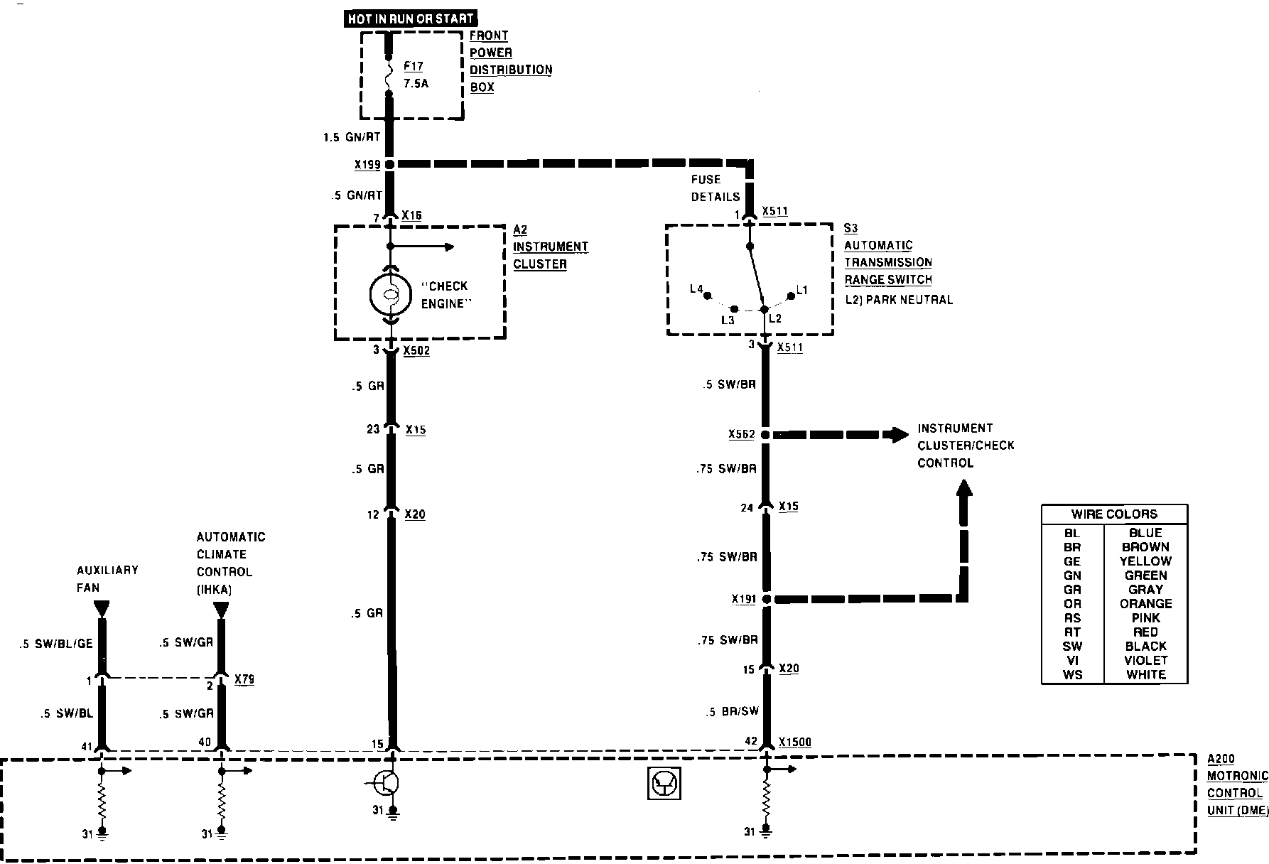 ^ Brown/black wire (terminal 3) of range selector switch to terminal 42 of the DME control unit: