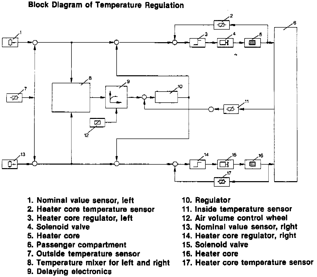 Individual temperature regulation is achieved by regulating the temperature the two separate heater cores.