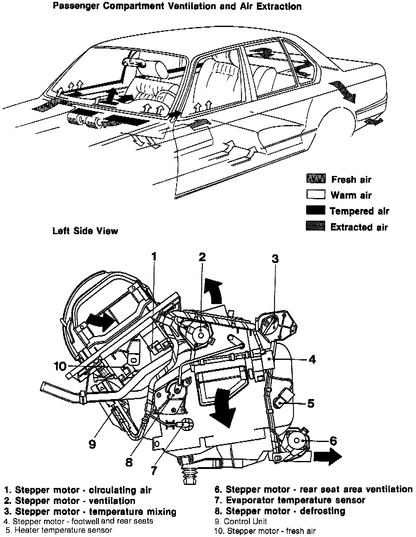 The flaps that change the air distribution are controlled by stepper motors. Stepper motors have many advantages; low power consumption, precise positioning without potentiometers and quick movements.