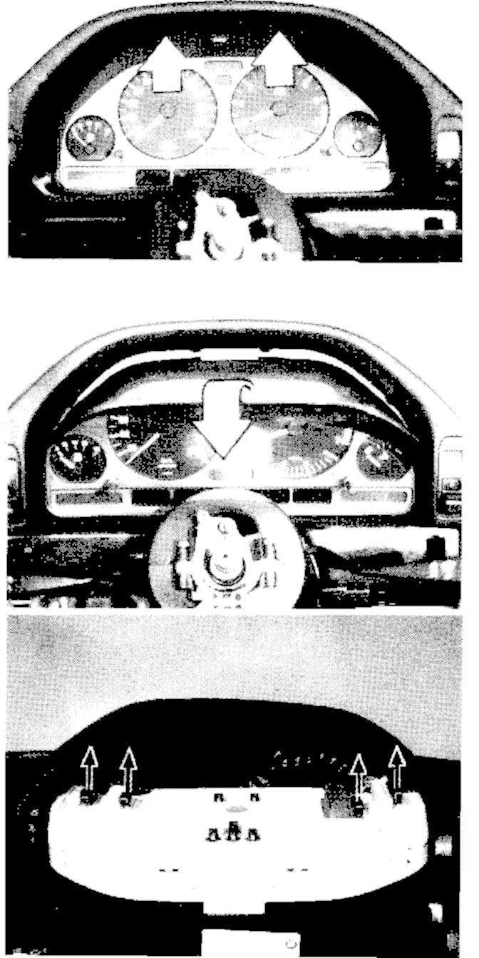 11. Pry out the top of the instrument cluster slightly and pull forward to the steering column. Then fold it down completely and remove.