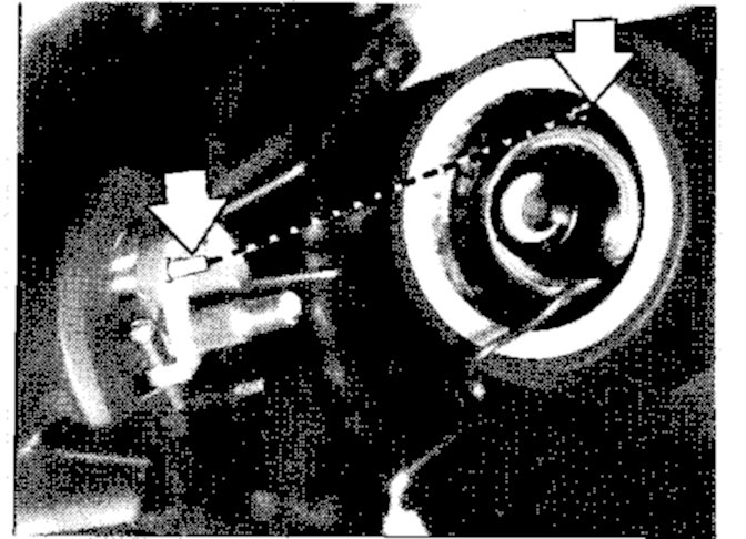 6. Turn the steering wheel to the straight ahead position (marks on the steering gear and the steering spindle indicate straight ahead position).