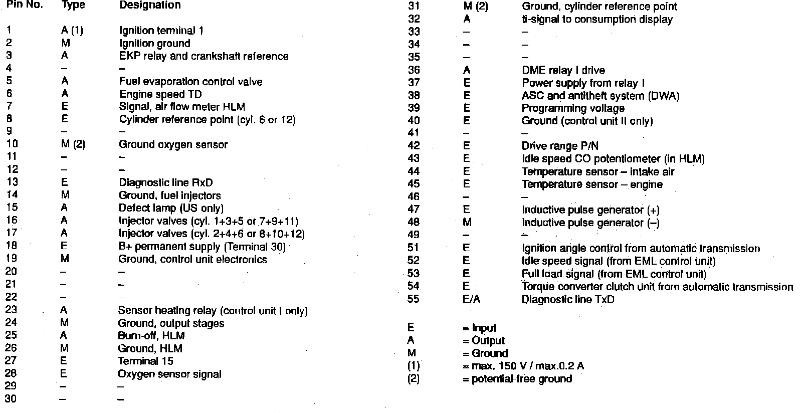 DME Control Unit Pin Designations:
