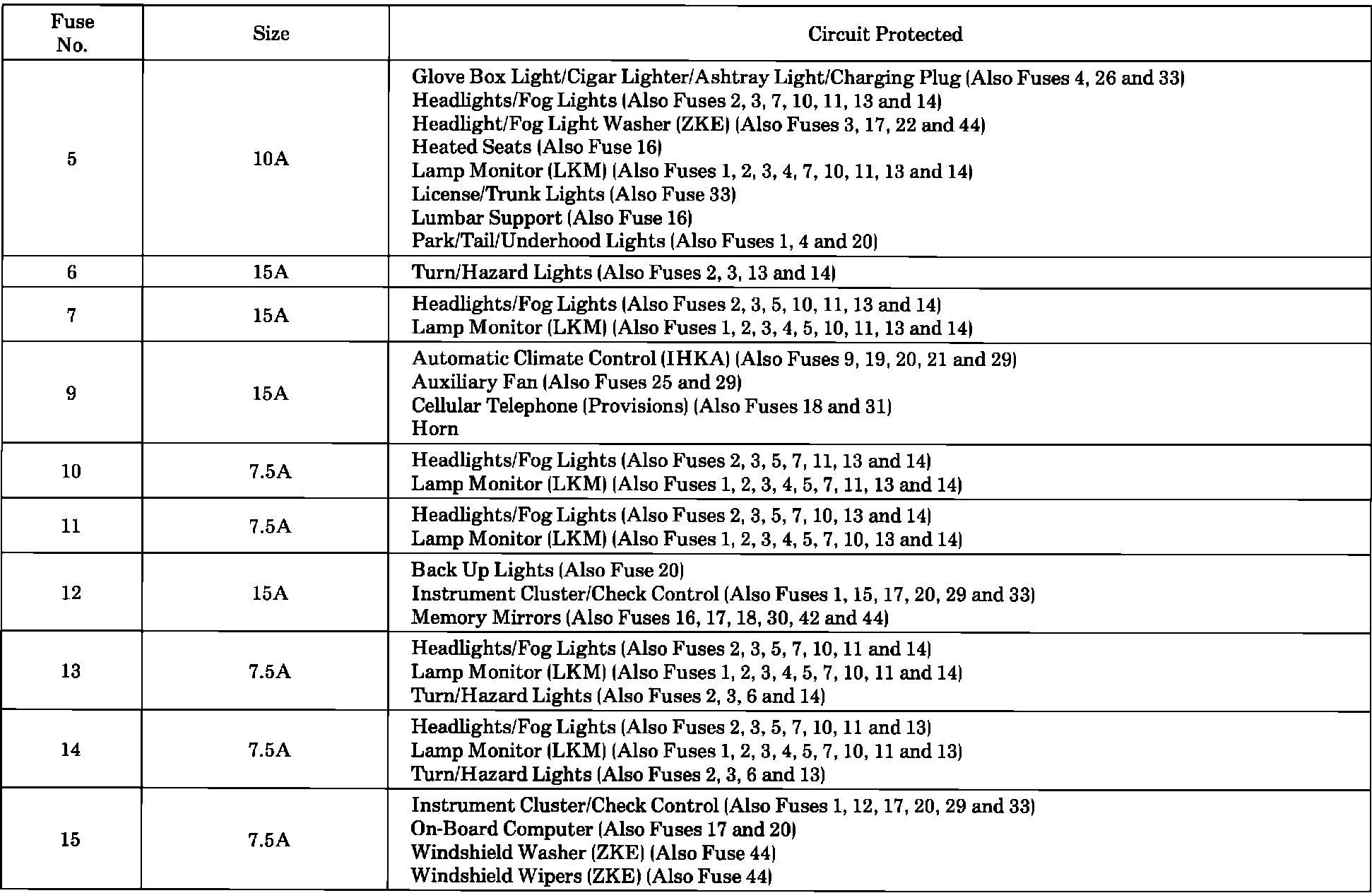 Fuse Assignments: 5 To 15: