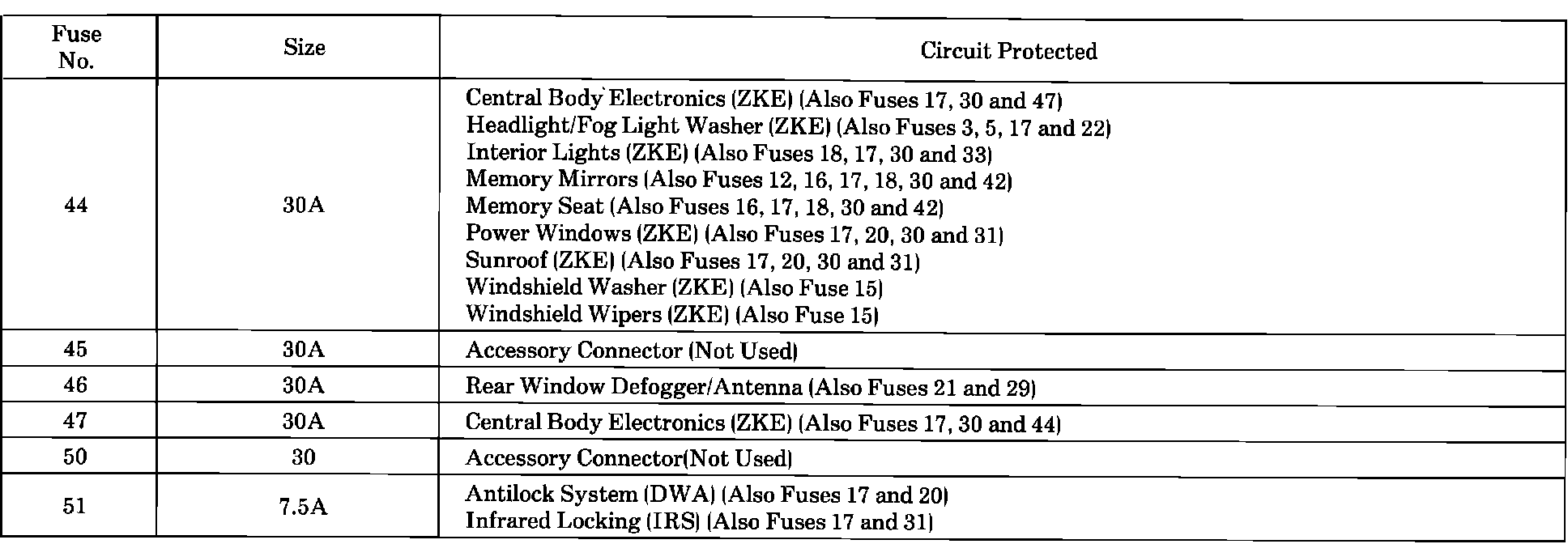 Fuse Assignments: 44 To 51: