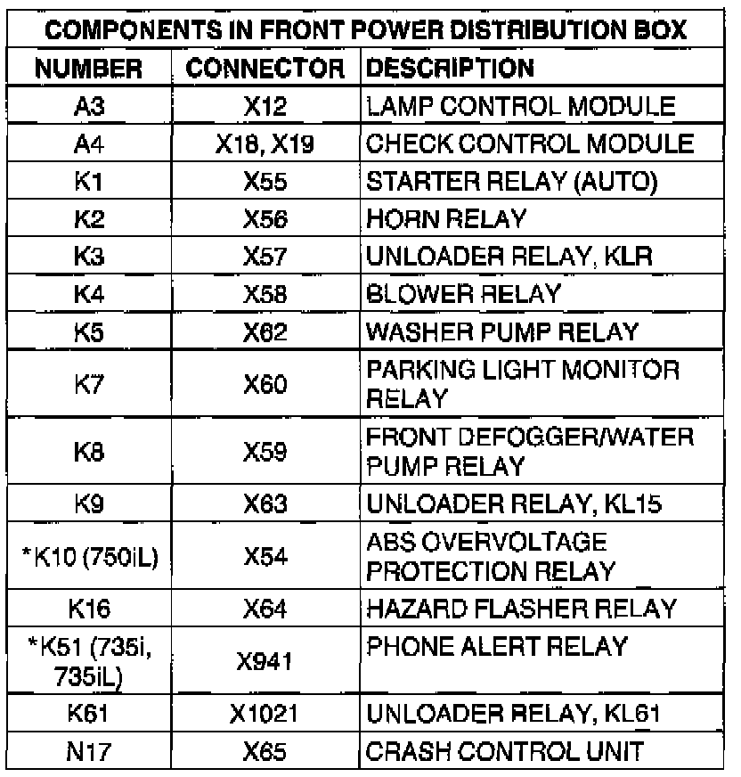 Components In Front Power Distribution Box: