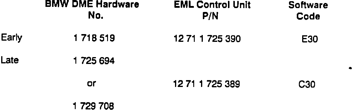 Note: Under no circumstances may the early and late version EML and DME control unfts be incorrectly matched.