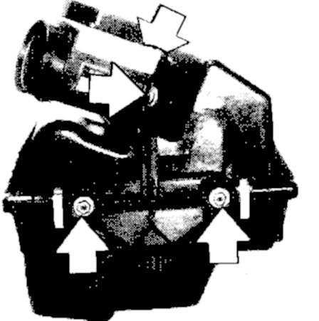 3. Loosen the air cleaner mounting nuts and lift out the air cleaner assembly with the air mass meter.