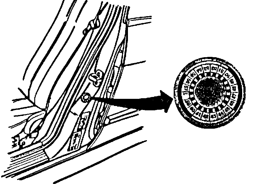 c) bend label to crease an edge and remove the backing paper. Then affix it to the driver's door as shown.
