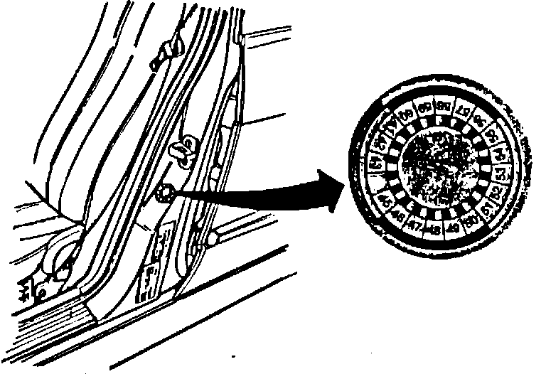 c) bend label to crease an edge and remove the backing paper. Then affix it to the "B" pillar (on driver's front door) as shown.