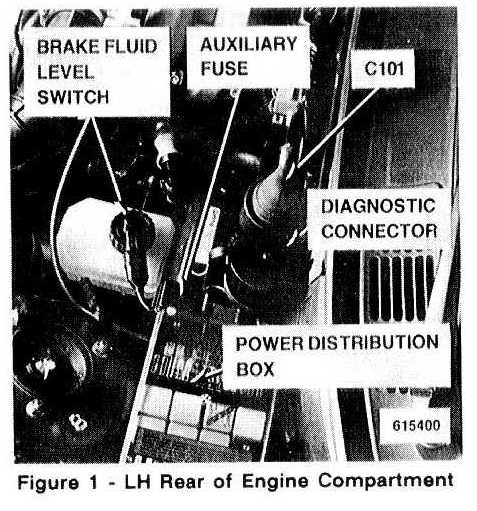 LH rear of engine compartment, right of power distribution box