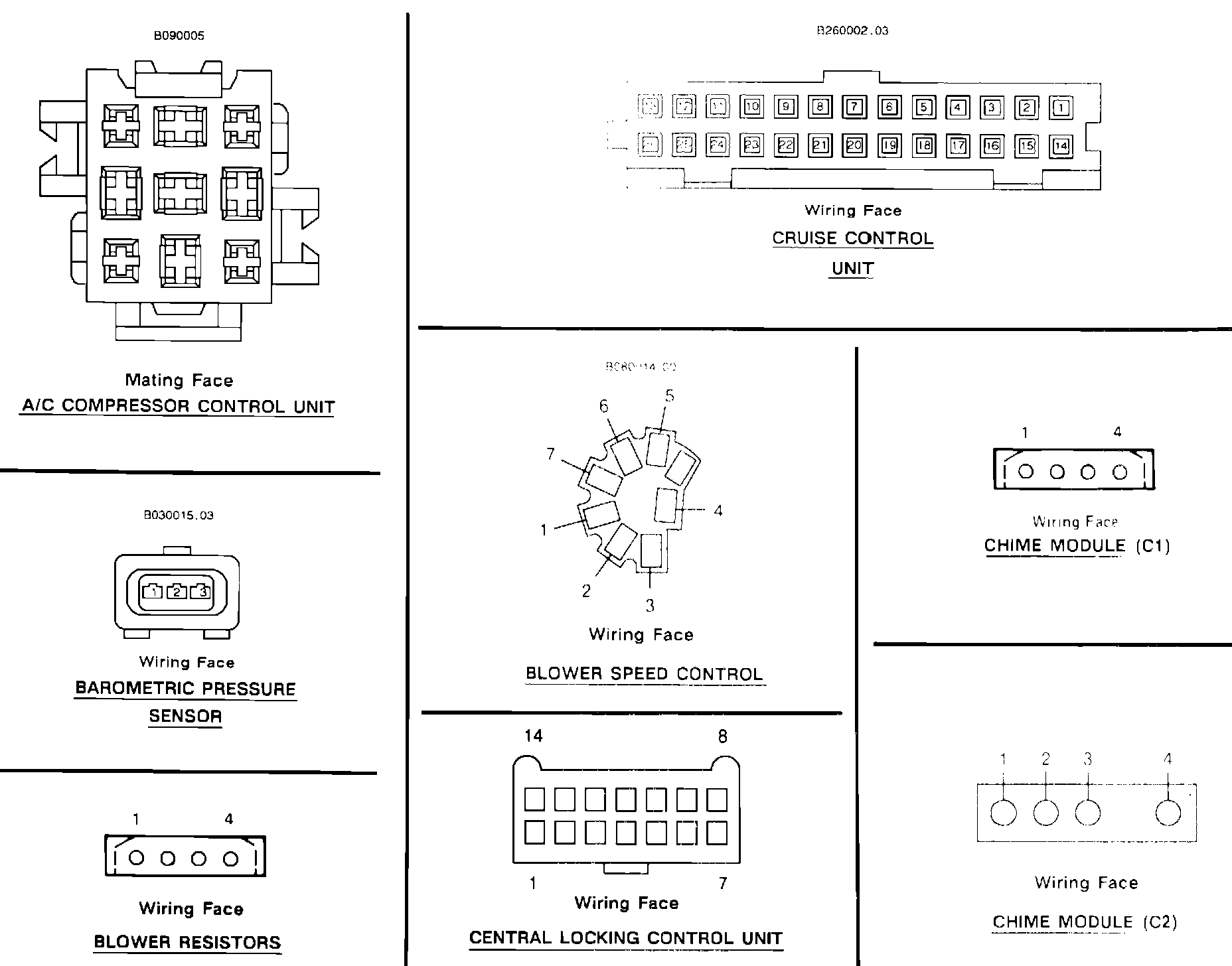 Connector Views: A/C Compressor Control Unit Thru Chime Module: