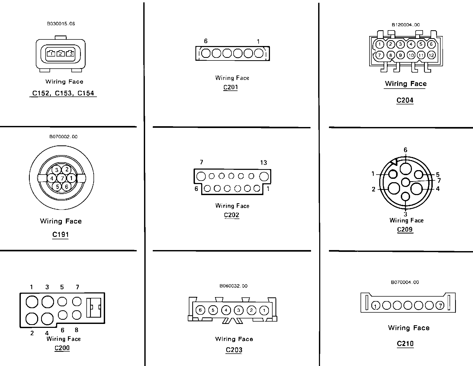 Connector Views: C152 Thru C154, C191, C200 Thru C204, C209 And C210: