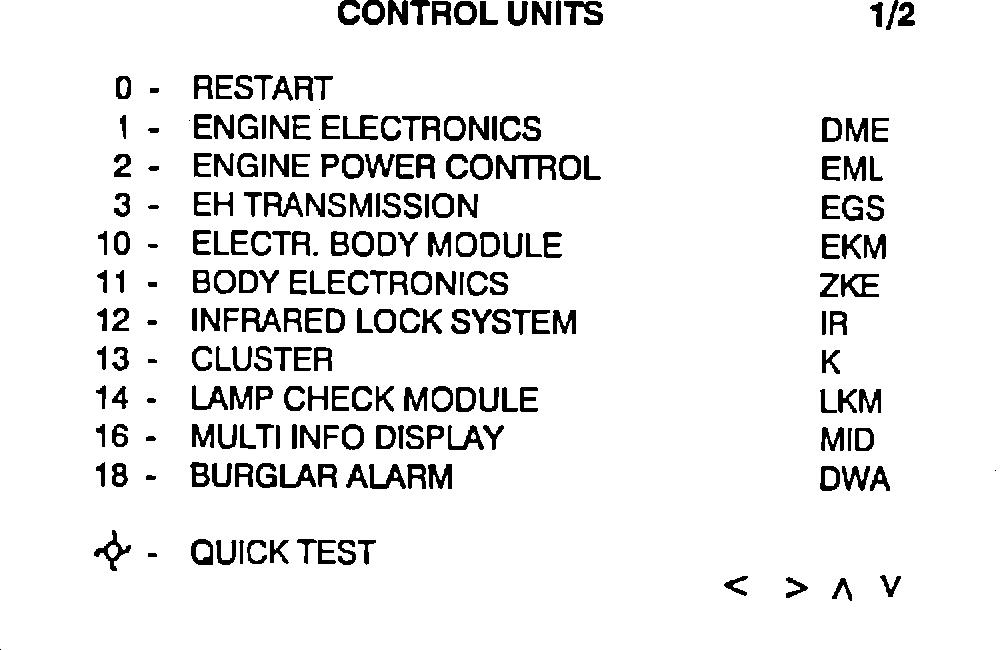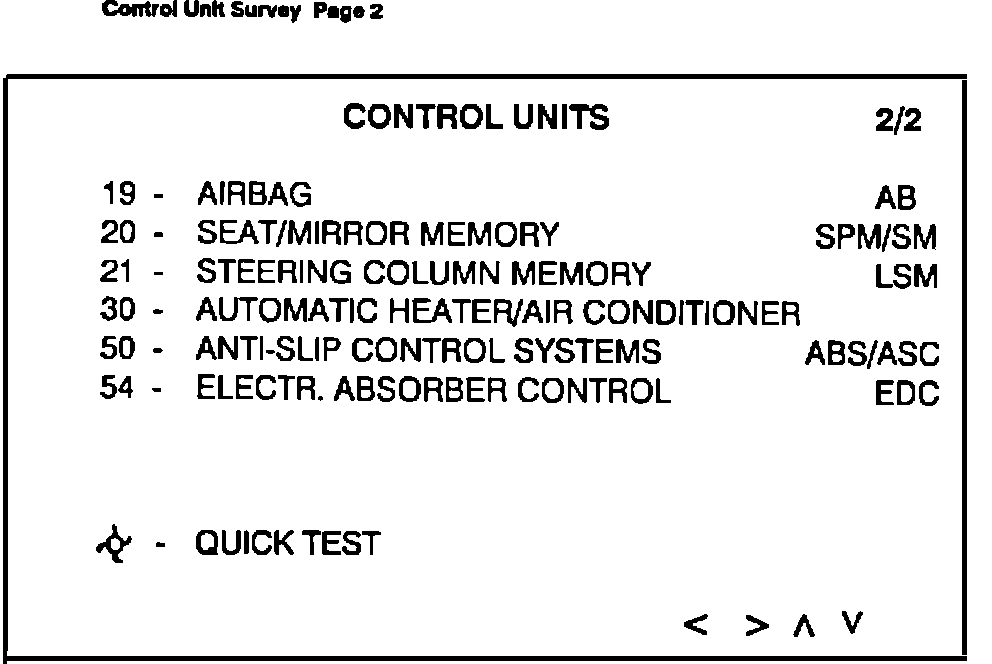 Attention! The highlighting of numbers means that only these numbers can be selected. Faults stored in the memory are displayed as before during the quick test by highlighting the entire text.