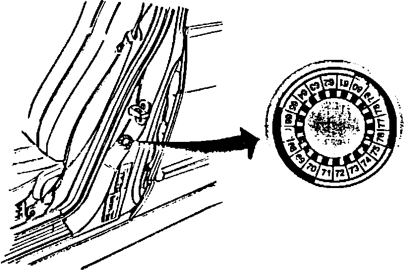 c) bend label to crease an edge and remove the backing paper. Then affix it to the driver's door as shown.