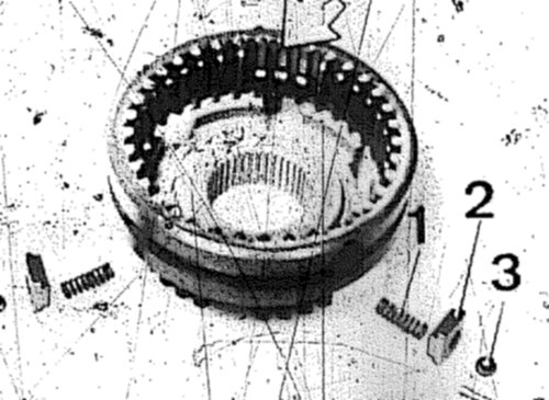 Spring (1), thrust piece (2) and ball (3).