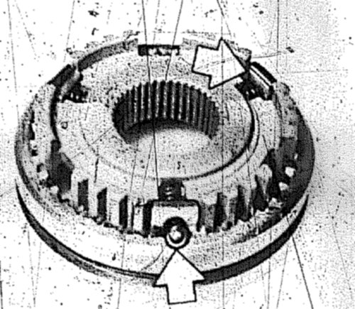 Note: Twist and press down synchromesh formly for measuring. Synchromesh rings should bear uniformly on the entire surface.
