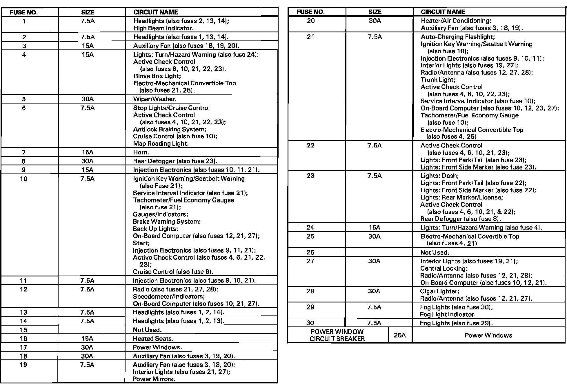 Fuse And Relay Positions In Distribution Box:
