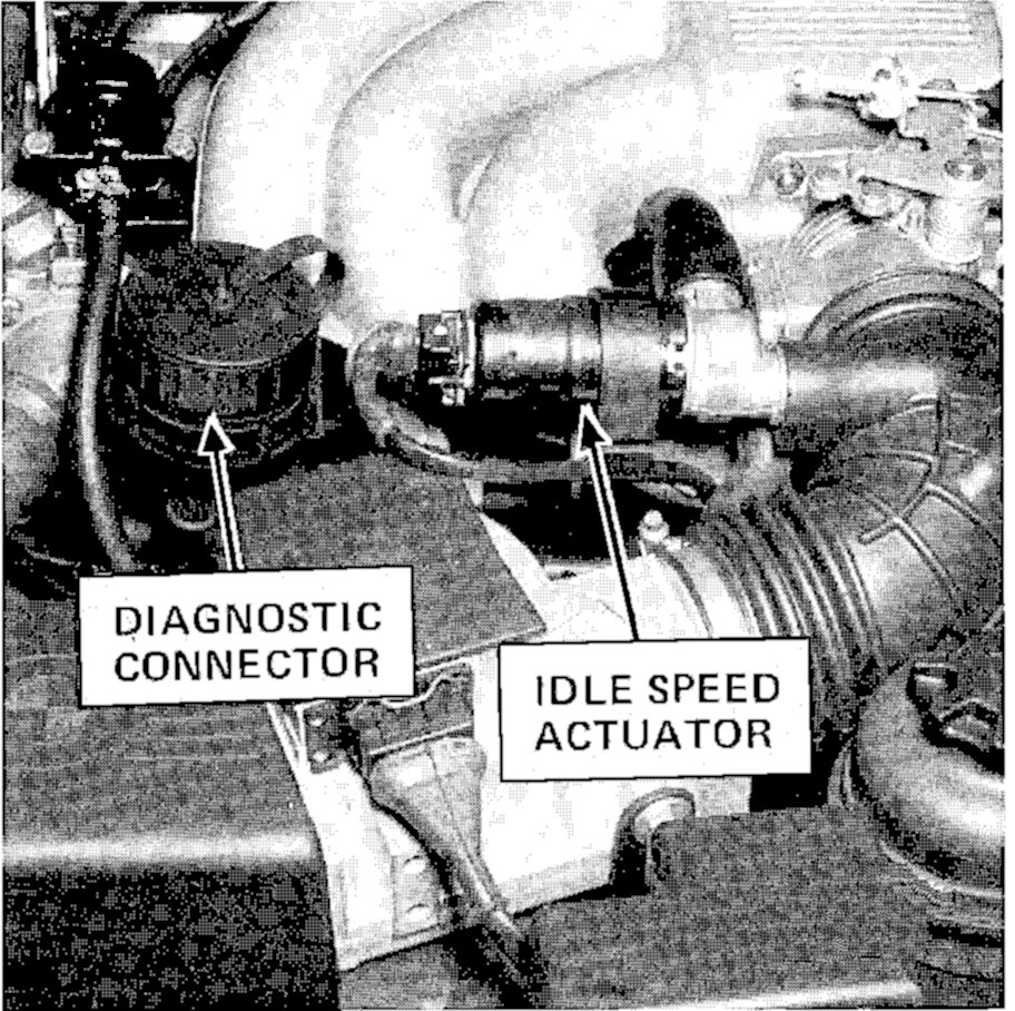 The diagnostic connector is located on the intake manifold near the front of the engine.