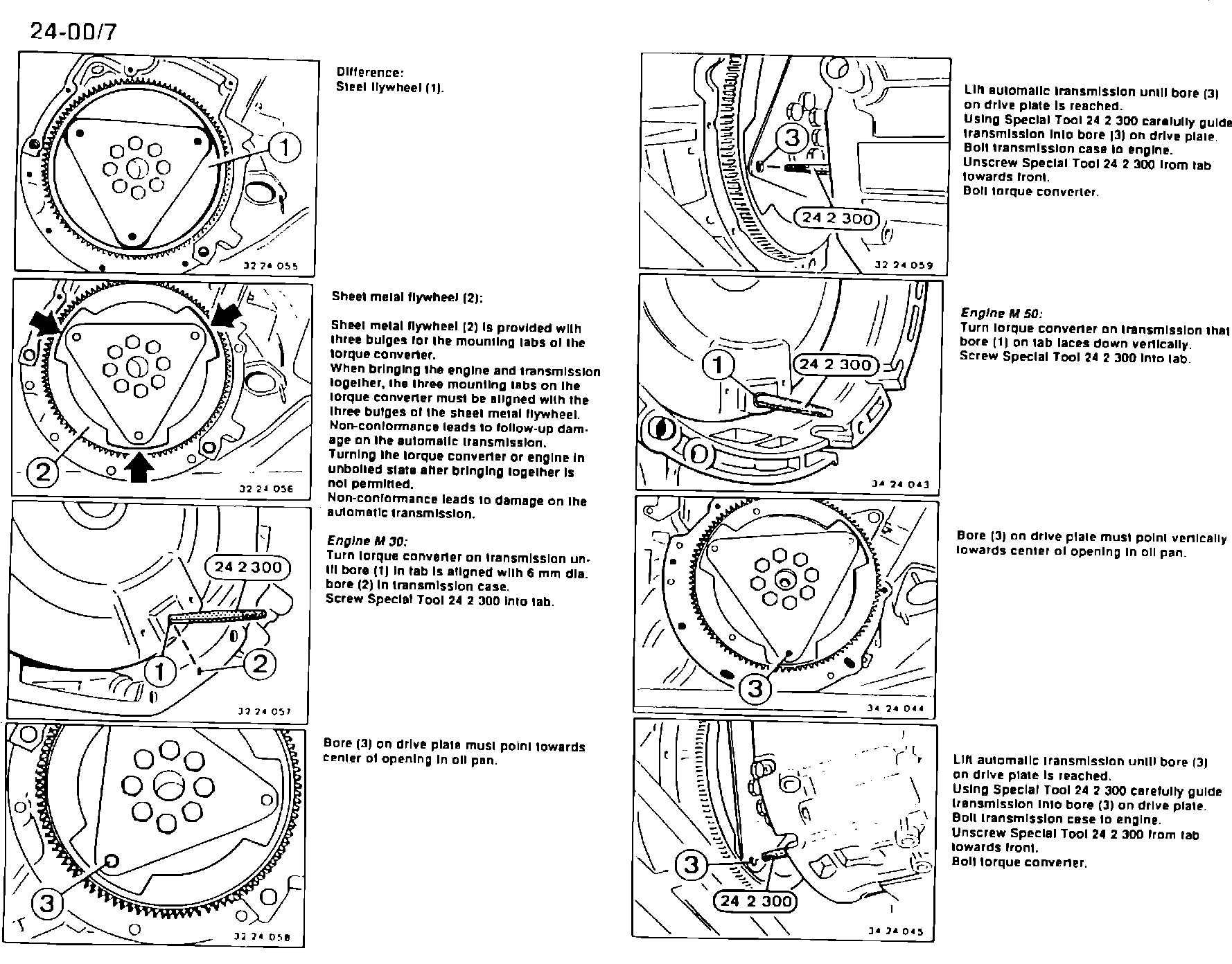 Situation: A new design flywheel has been phased into production in BMW models with M30 or M50 engines beginning in February 1991. New repair procedures have been developed to eliminate the possibility of damaging the automatic transmission during installation on vehicles with the new one-piece sheet metal flywheel.