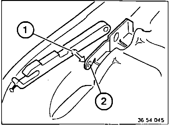 Insert left/right adjusting levers on sun roof lid. Pin (1) must seat properly in bore (2).