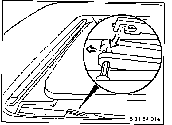 Important! Moving the floating headliner quickly could damage the mechanism (guide/rotary catch pin) of the sun roof cassette. Do not move the floating headliner with force.