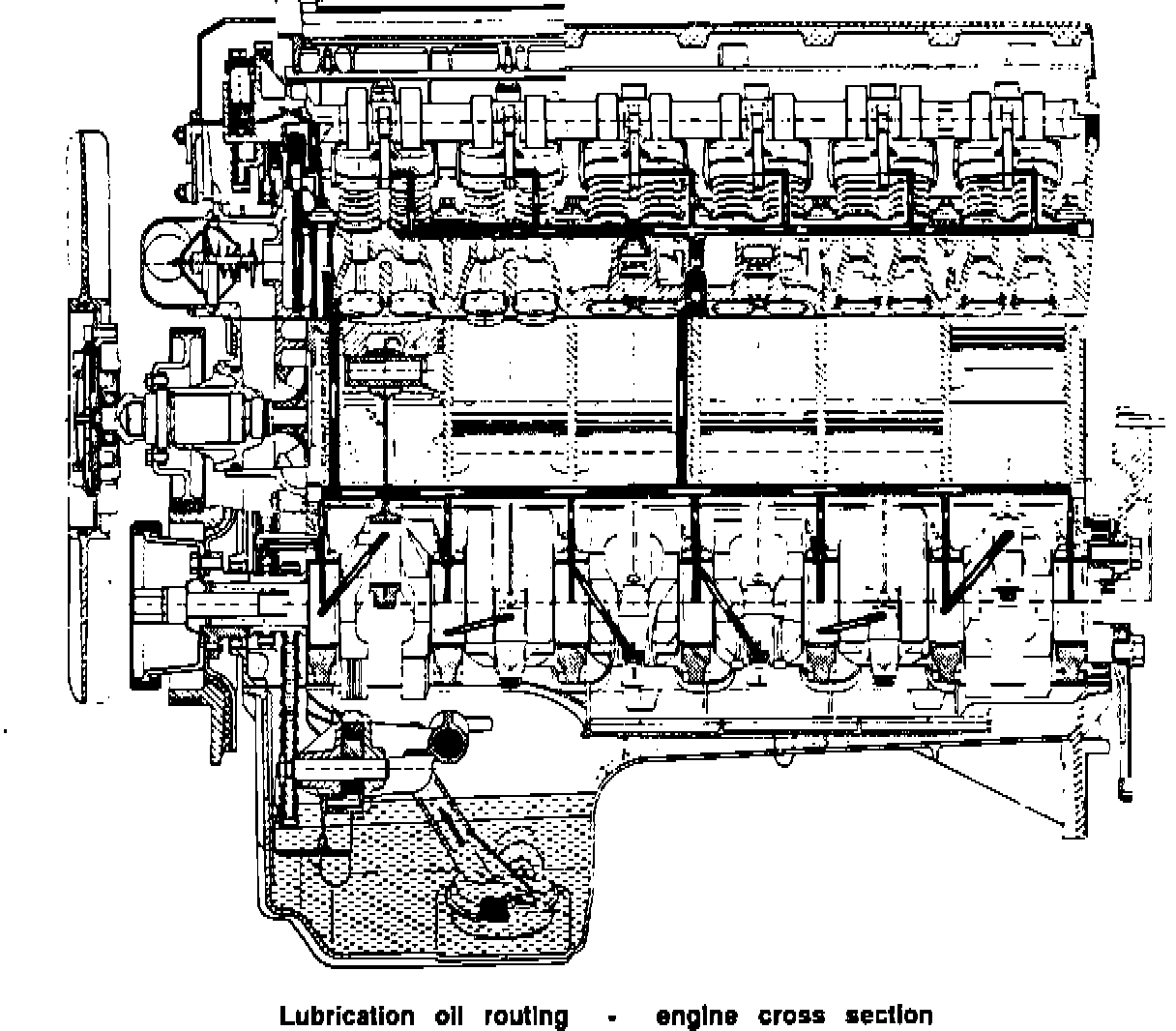 The single-piece pressure-cast aluminum oil pan incorporates an oil deflector and a baffle plate which maintains the oil supply reliability in extreme conditions and prevents engine oil foaming.