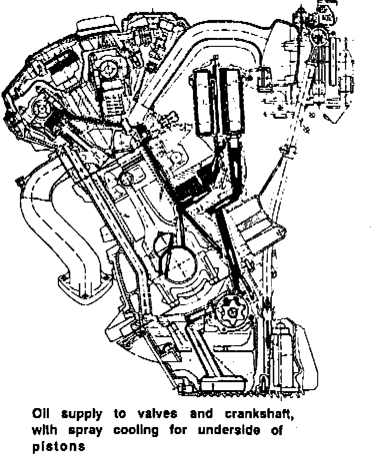 The pump is bolted to the engine block in the oil sump, and driven directly from the crankshaft by a single roller chain with a tensioner.
