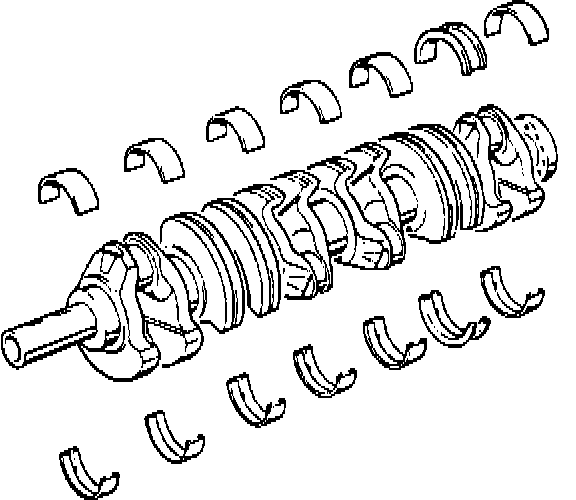 The crankshaft is a spheroidal graphite casting supported by seven main bearings with 12 counterweights. Precise design measures have reduced the crankshaft weight of the M50 by approximately 3 kg (6.5 lbs.) compared to the M20.
