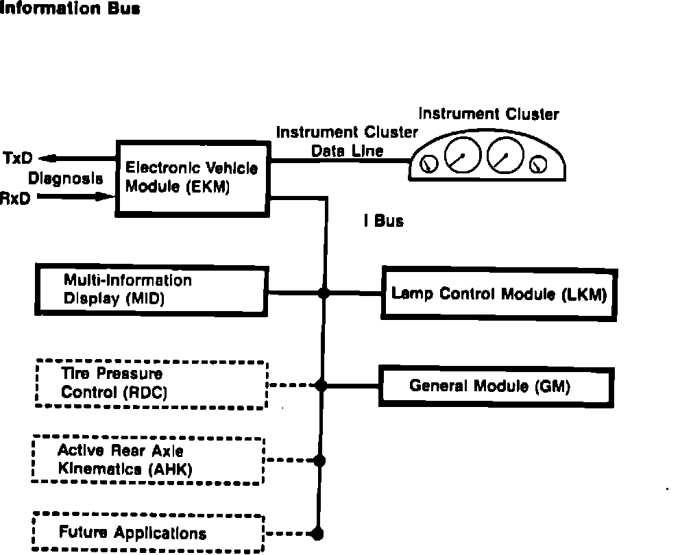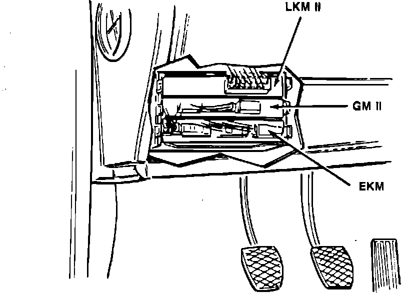 The EKM contains an EEPROM (Electrically Erasable Programmable Read Only Memory). The EEPROM stores vehicle specific information (such as VIN) and variable data (such as odometer mileage and service indicator information). It performs many of the functions previously performed by the separate coding plug of the E32 and E34 series.