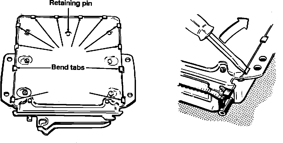 - Carefully bend up the tabs on the cover only as far as necessary to remove the cover.
