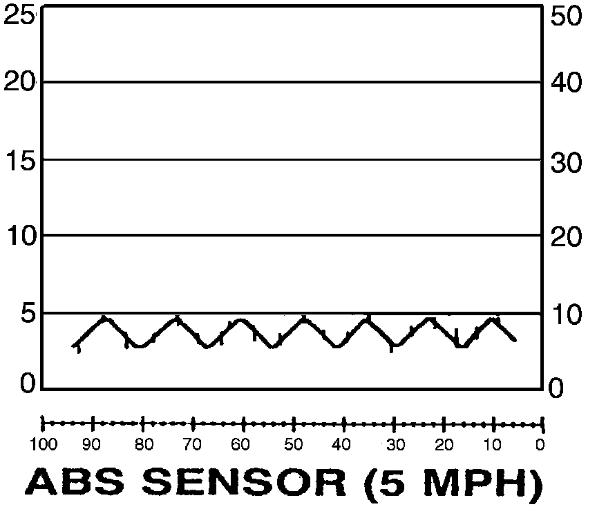 The speed sensor pulses can also be checked individually with the BMW Service Tester Oscilloscope. Connection with universal adapter at wire harness connector.