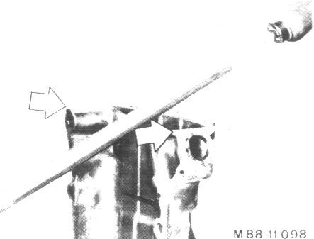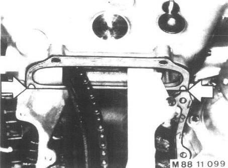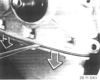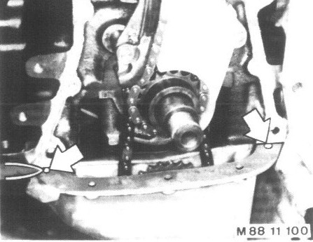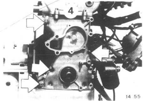 Loosen oil pan gasket on timing case cover carefully with a knife.