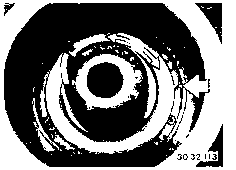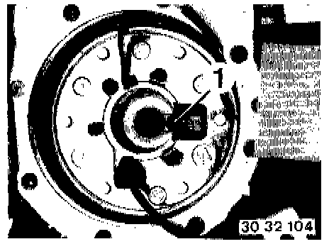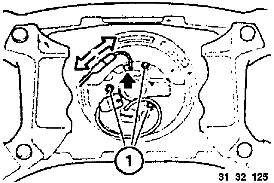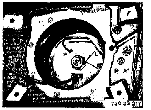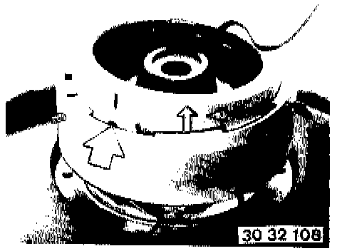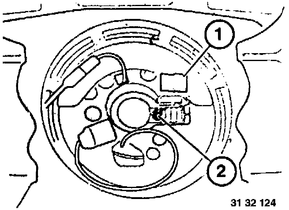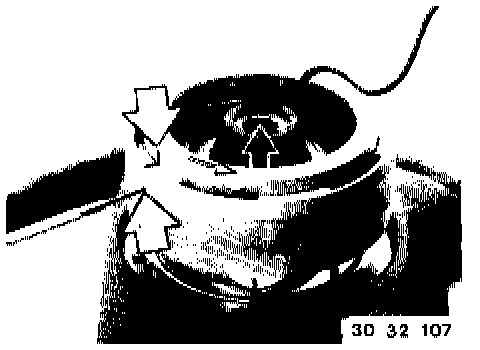 NOTE: Adjust Contact Ring Center Position If Necessary: Press down spring (1), turn the contact ring against the left or right stop and then turn it back about 3 turns until the arrow marks for the center position are aligned. Now release spring (1).