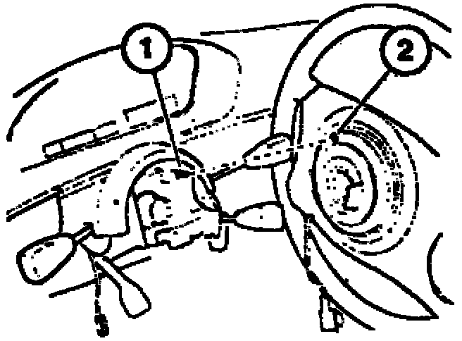 - Lock pin (1) must engage in opening (2).