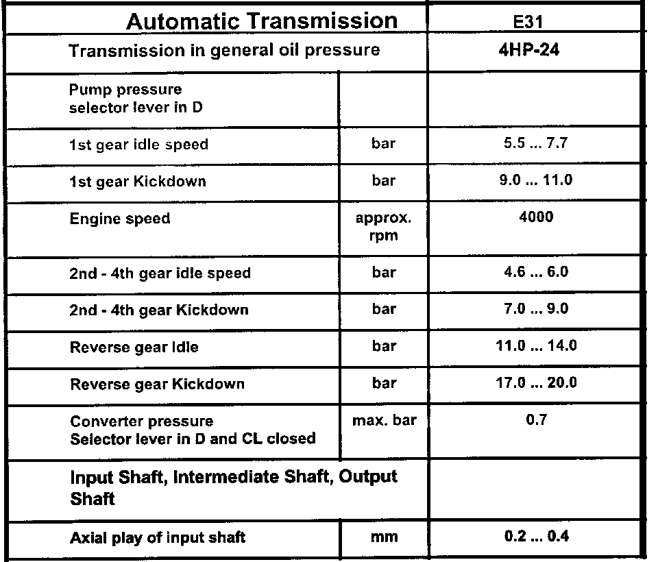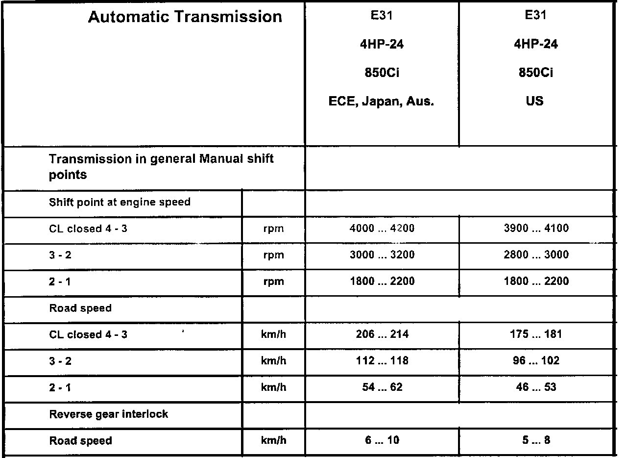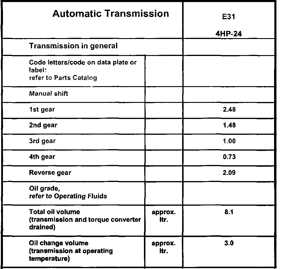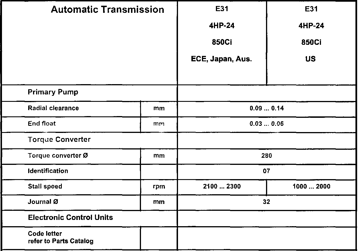 Automatic Transmission Technical Data