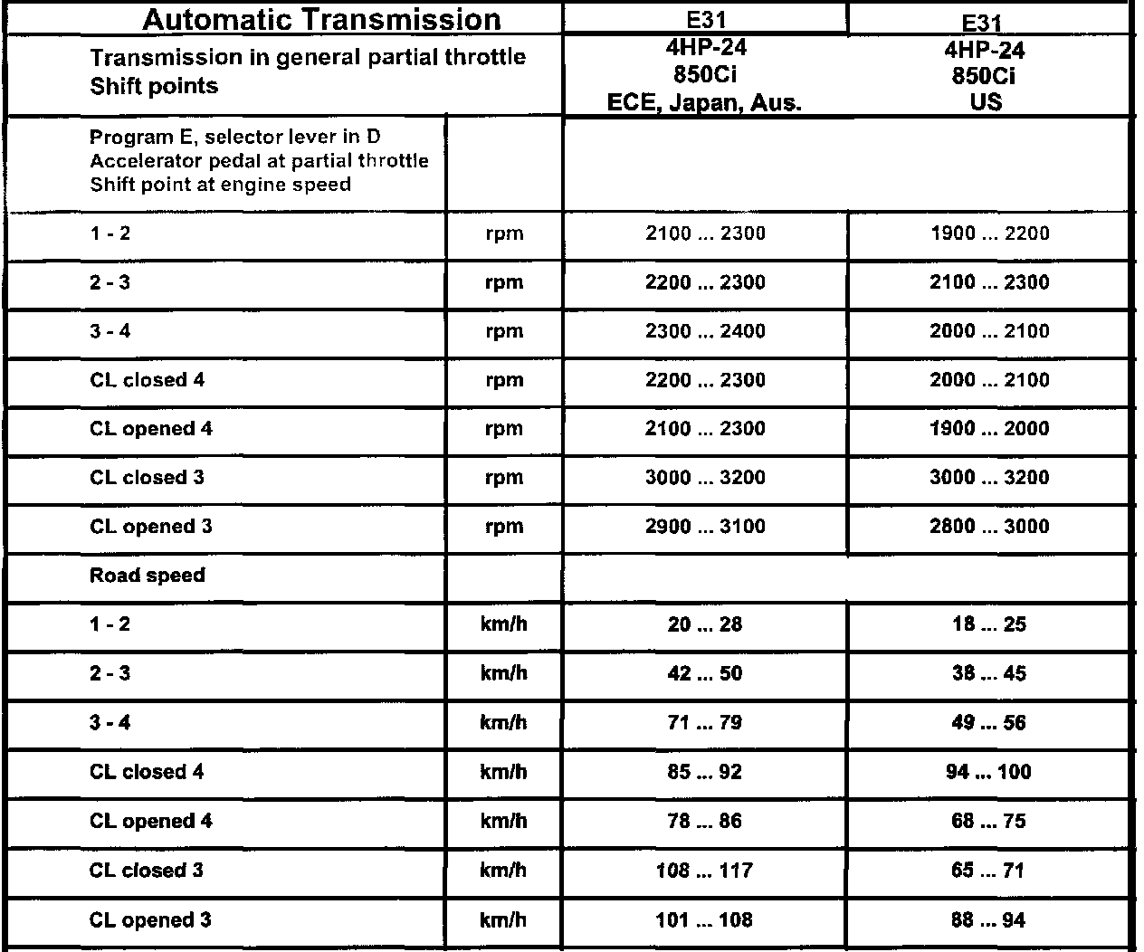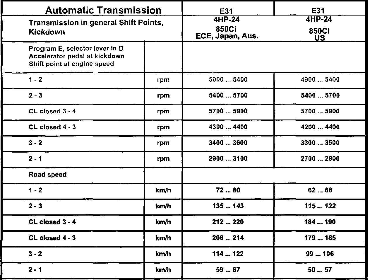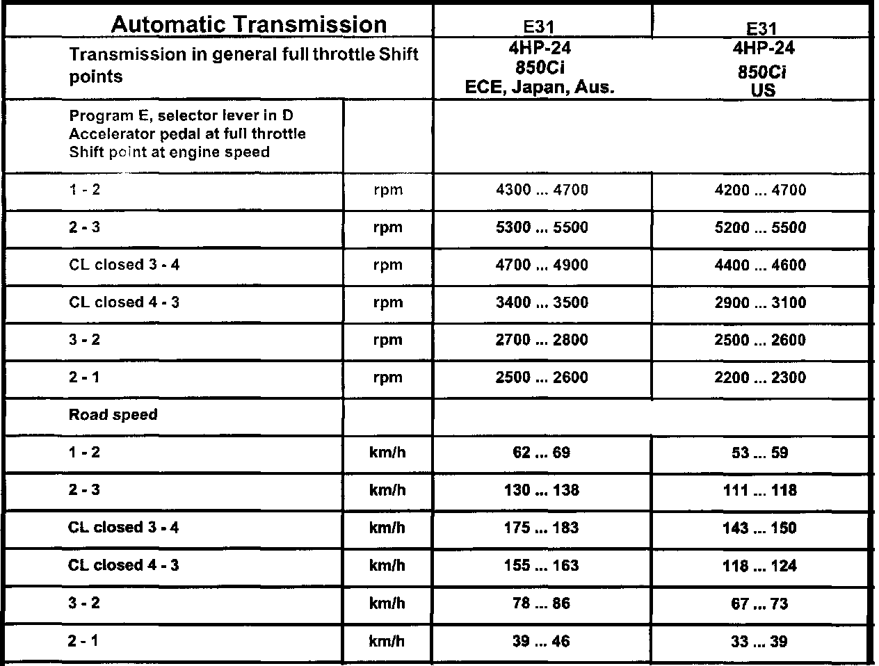 Automatic Transmission Technical Data