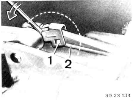 - Disconnect clip in retaining tab by turning and swing up.