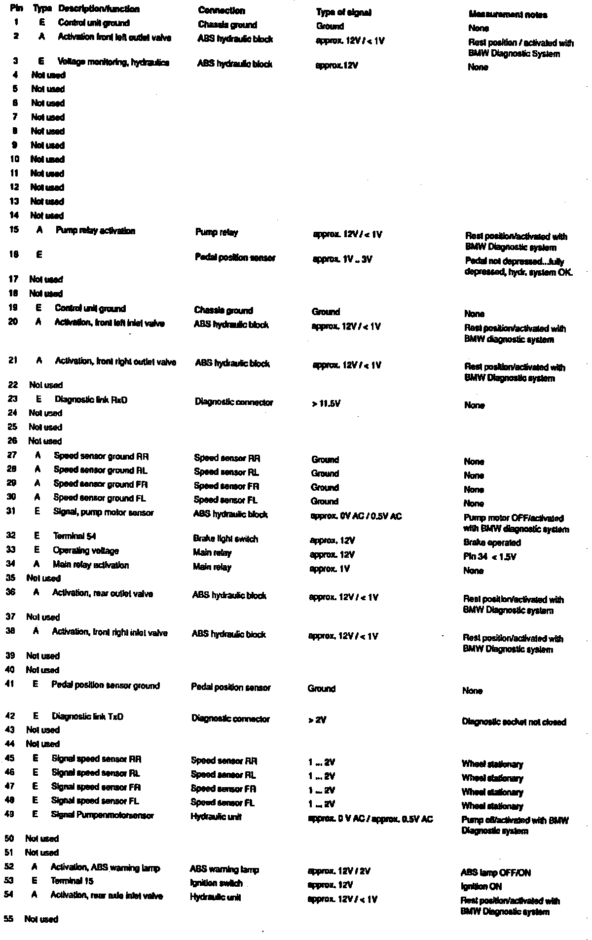 Fig. 2 55-pole ABS Connector Pin Identification & Values. 1991-92 300 Series: