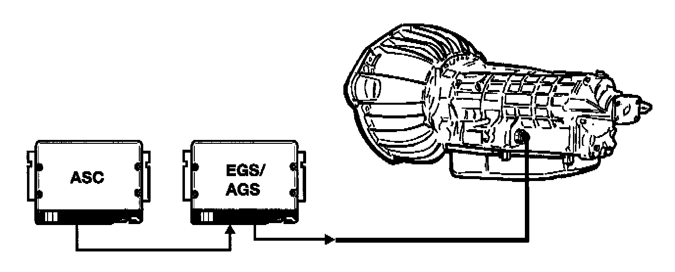 A signal is sent to the EGS/AGS control module, by the ASC control module during ASC regulation. The EGS/AGS will modify the shift characteristics to provide smooth shifting or suppress an oncoming gear change.