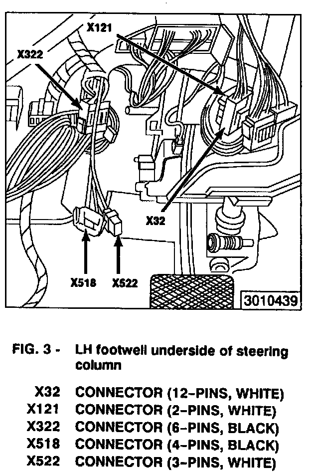 LH footwell underside of steering column