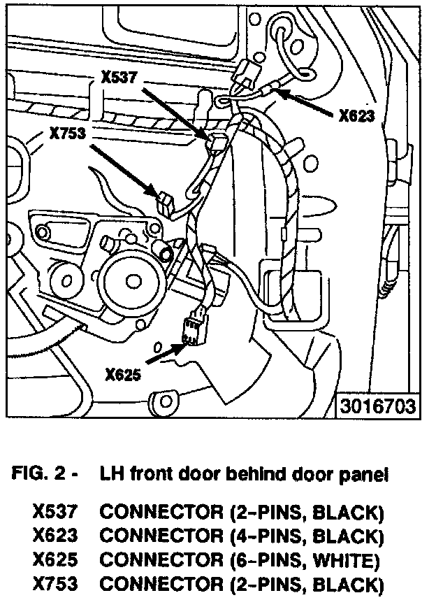 In upper LH front door behind door panel