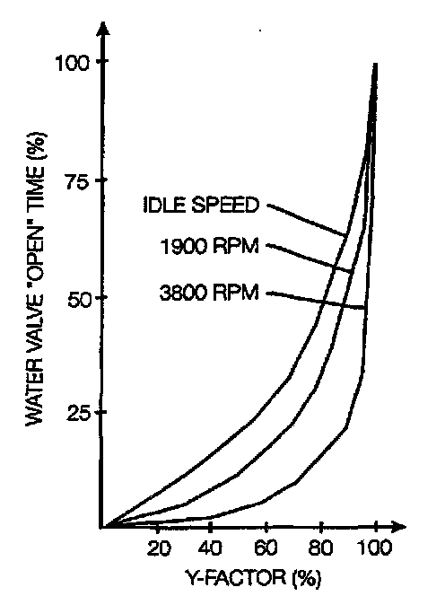 Valve "open" time increases with increasing Y-factor, but E36 vehicles have another "valve open time" factor since they do not have an auxiliary coolant pump: engine speed.