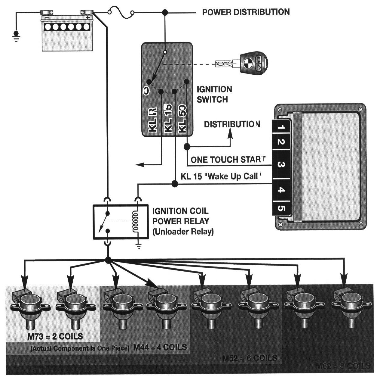 Though the power supply to the ignition coils is not an output function of the engine control module, it must be considered during diagnosis. Up to 1996 model year, the ignition coils received their operating power directly from the the KL 15 ignition switch terminal.