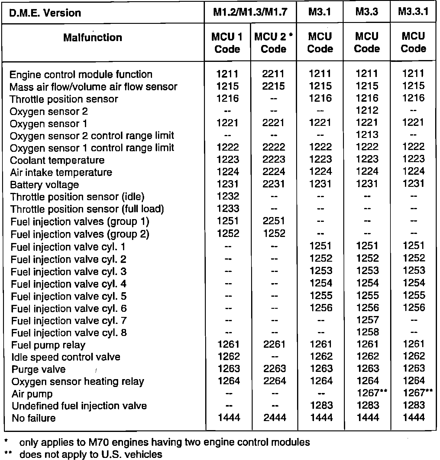 This Service Information bulletin supersedes S.I. 13 08 88 (1718) dated April 1992. It includes the new flash codes for the Engine Control Module (DME) M3.3.1 system. Please remove and discard S.I. 13 08 88 (1718) dated April 1992 from your S.I. binder and also discard the previous flash code card SD 92-002 without the new information for engine control module version M3.3.1.