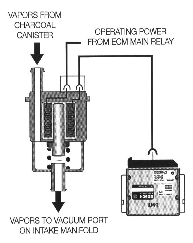 Like any other form of combustible fuel, the introduction of these vapors on a running engine must be controlled. The ECM is assigned the job of controlling the purge vapors as an output function.