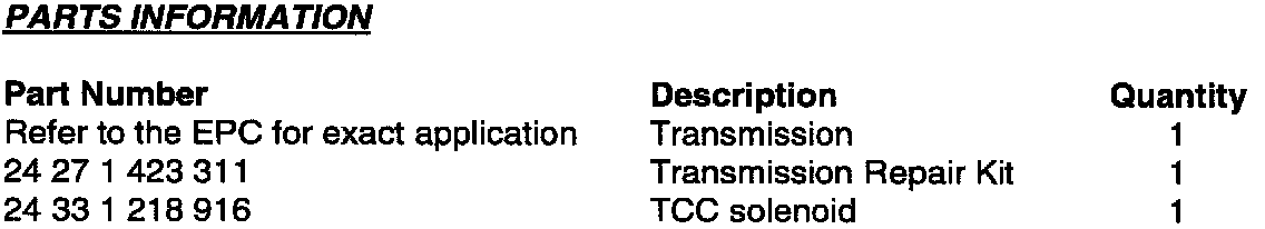 PARTS INFORMATION