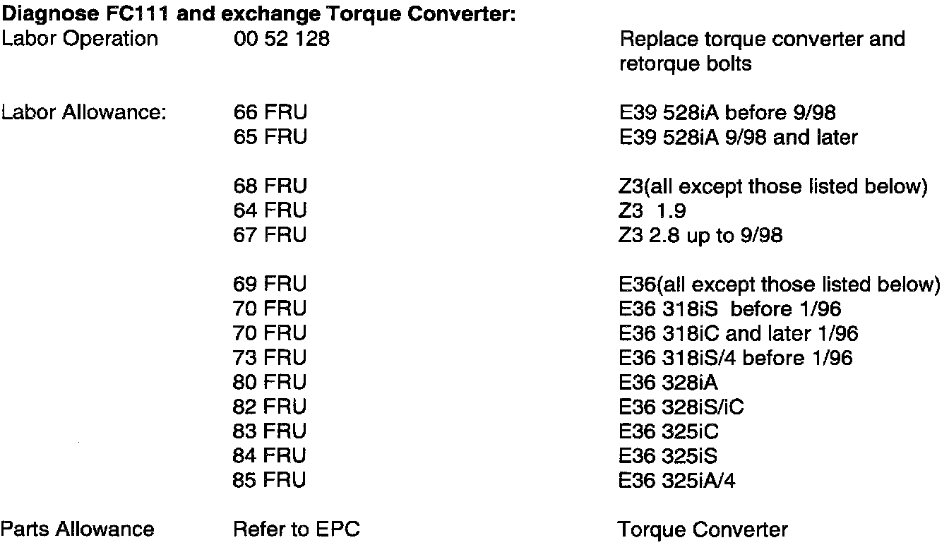 Diagnose FC111 and exchange Torque Converter: