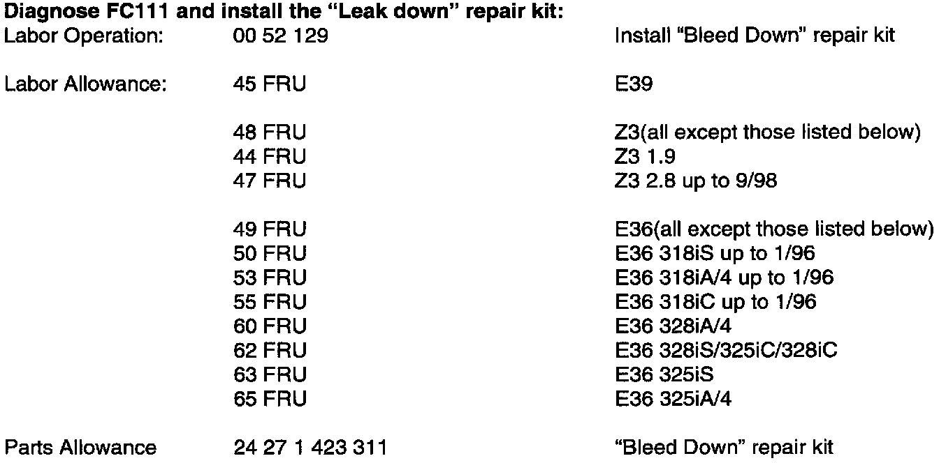 Diagnose FC111 and install the "Leak down" repair kit: