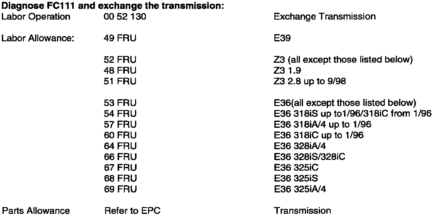 Diagnose FC111 and exchange the transmission: