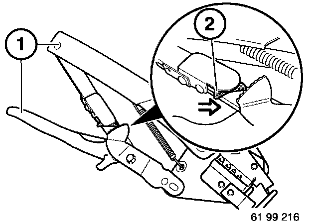 - Use special tool 61 9 041 (pliers) with special tool 61 9 042 (matrix).